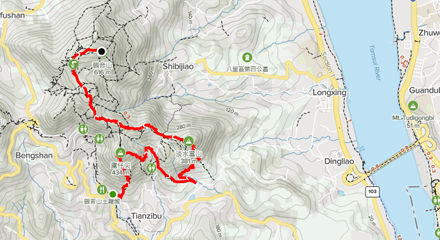 其山系之天際線由十八座連峰形成,主峰標高616公尺,由淡水、關渡一帶遠眺,仿若一尊仰躺觀音之勢而得名。全區有十八連峰,山頂稱「硬漢嶺」,是唯一超過600公尺之地,區內有凌雲禪寺等多座古剎,更增添觀音山的靈性,其中還有數間供奉觀世音菩薩的觀音寺。