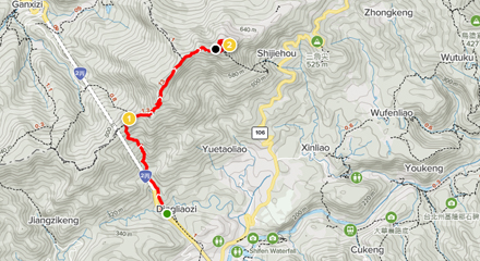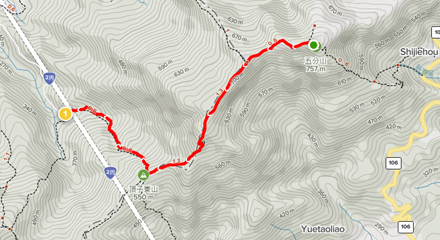 其次,也由荖寮坑礦業生態園區進入十分古道接五分山步道,十分古道總長約1公里,又稱為暖東舊道,是過去旳淡蘭淡蘭古道暖暖支線,十分古道和五分山步道,會在五分山步道1.5K處交會。